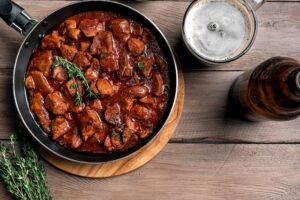 In Ireland, it’s not uncommon to feature alcoholic beverages, like stout, whiskey, beer, and cider, as ingredients in everything from stews to braising liquids. As Ireland is known for its alcohol, incorporating the flavors of these beverages into protein products makes for an authentic and flavorful way to celebrate Irish cuisine. Think cider braised lamb shanks, maple stout BBQ meatballs, chicken wings in an Irish whiskey cream sauce, or beer braised pulled pork.